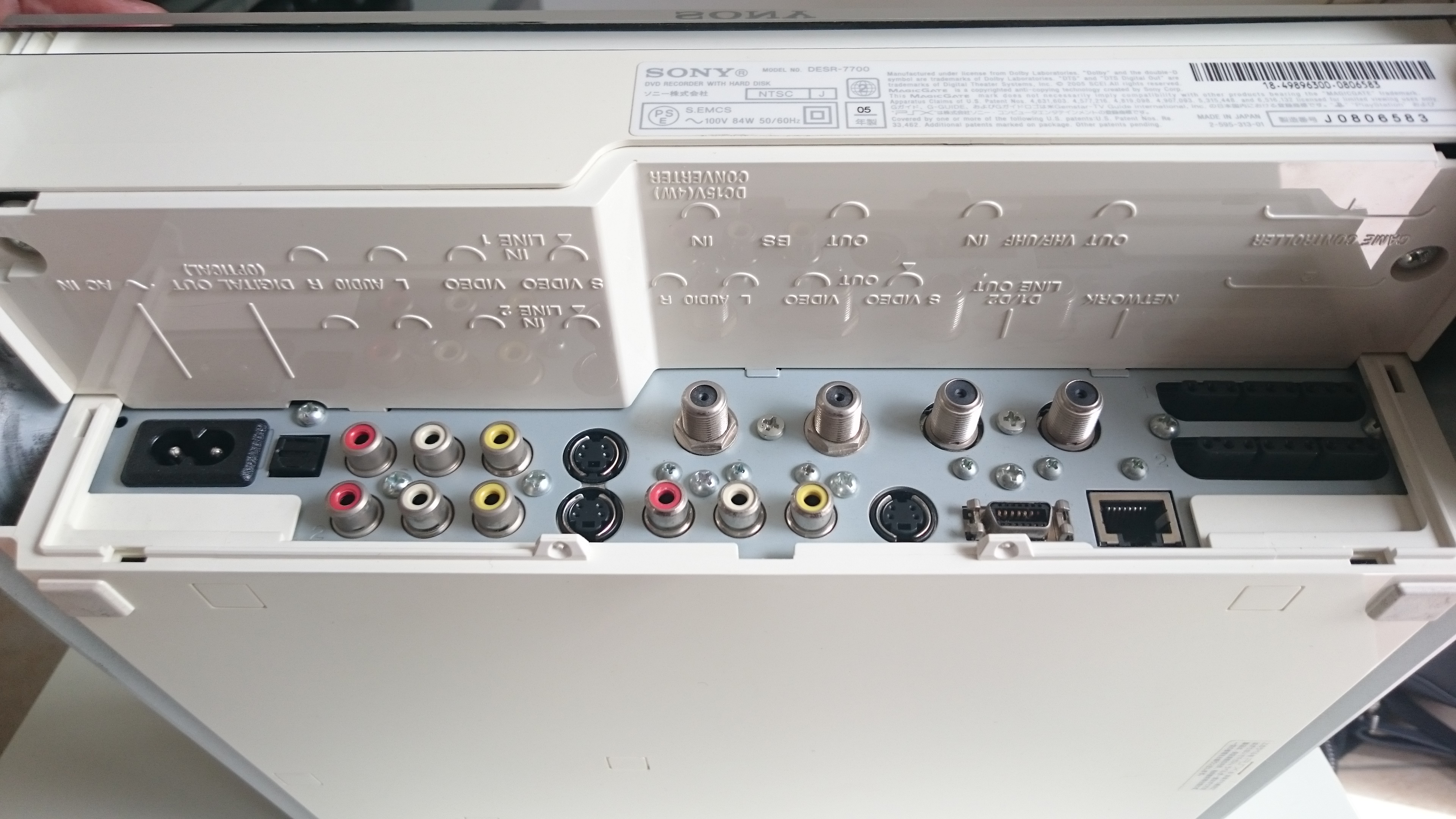 À l’arrière les ports varient en fonction du modèle et de la série mais globalement on a : une entrée RF, deux entrées composite, deux entrées S-Vidéo, une sortie composite et une sortie S-Vidéo, une entrée et sortie VHF/UHF pour la télévision par câble. Il faut aussi noter l’existence d’un port D1/D2. (d’anciens formats numériques professionnels pour magnétoscope).
